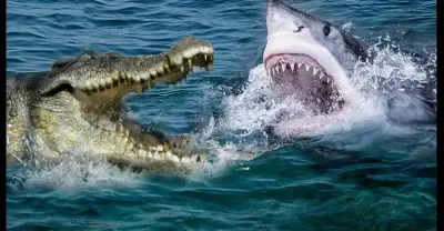 大白鯊襲擊鱷魚,結果一口咬住鱷魚
