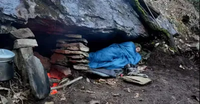 在地下掩體的冬季露營-在暴風雪中醒來-叢林飛船-緊急生存避難所