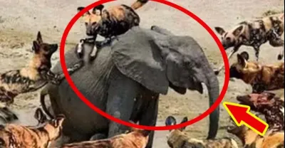 10條野狗圍攻5噸的大象,實力懸殊太大被碾壓,野狗被踩得粉碎!鏡頭記錄激烈全過程!