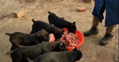 兩棟犬舍二十多條狗餵雞架,狼毛青吃的最快,卡斯羅吃的最猛【劉哥在農村】