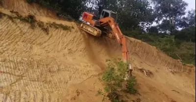 如何讓挖掘機爬下陡坡? 鏡頭拍下全過程
