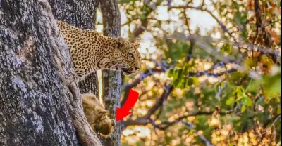 頂級獵手—母花豹,7米高的樹上瞬間獵殺狒狒,不愧為草原速度之王