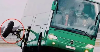 奔馳公司發明永不翻車的大巴車,只裝了一個輔助輪,卻永遠都不會翻車!