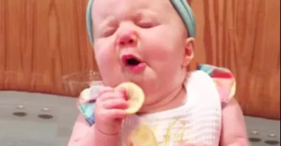 寶寶不聽媽媽的勸,硬是要吃檸檬,接下來發生的一幕看完憋住別笑