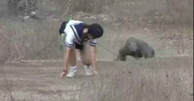 日本女子「挑釁」科莫多巨蜥,掛塊生肉吊胃口,結果悲劇了!