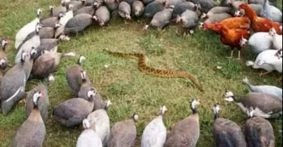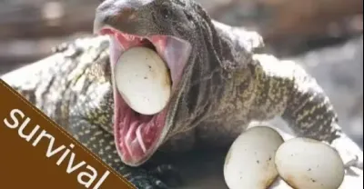 驚奇與鱷魚的反應時,蜥蜴偷雞蛋。