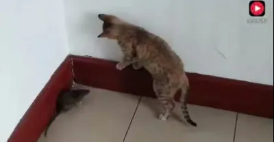 難得一見的貓抓老鼠畫面,老鼠被貓堵著了