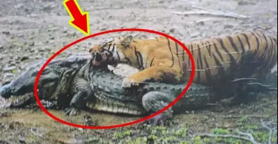 400斤孟加拉虎王激戰3米7巨鱷,直接把鱷魚吃剩皮,鏡頭記錄全過程!