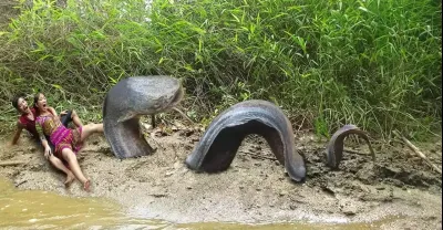 小情侶用奇特的捕魚方法,原始生存技能烹製鮮魚