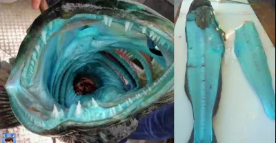 北美漁民釣到最奇怪的藍魚,連內臟都是藍色的!是核輻射導致的嗎?!