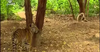 老虎遭猴子作弄,鏡頭記錄全過程