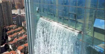 中國建了一座大樓,大瀑布從天而降,老外:太厲害了