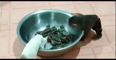 猴子趁主人不在家,帶著貓咪對螃蟹下起黑手,下一秒忍住不要笑!