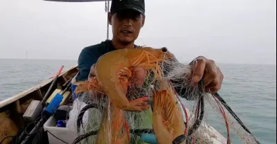 捕魚幾十年都少見,大蝦王一條比手還大