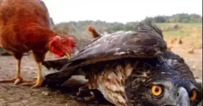 老鷹抓公雞反被公雞纏住腳主人高興壞了