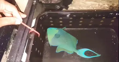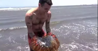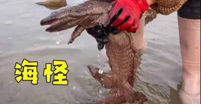 小章趕海遇到一隻海怪,皮膚冒白色粘液,嚇得小章不敢抓