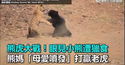 熊虎大戰!眼見小熊遭獵食 熊媽「母愛噴發」打贏老虎|三立新聞網SETN.com