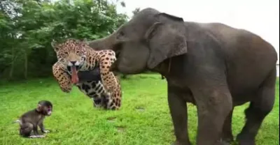 大象太厲害了 驅趕花豹救小猴