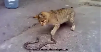 蛇捕抓貓的過程,貓與蛇的鬥爭非常激烈