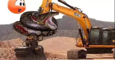 挖掘機在工作時捕捉到一隻巨大的蟒蛇 ! 蟒蛇攻擊挖掘機