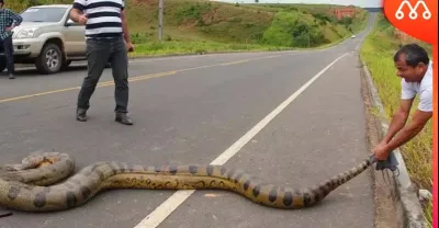 男子路邊抓大蟒蛇,鏡頭拍下全過程