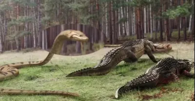 10米長的蟒蛇,大戰2噸重的鱷魚,打鬥場面太慘烈!
