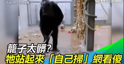 黑猩猩「自主掃地」!專業2動作 6千人看傻:比我還乾淨