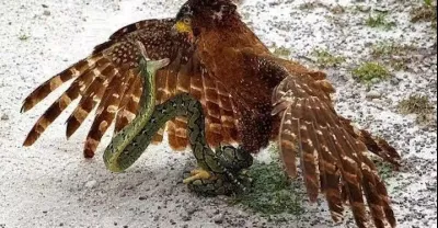 老鷹捕抓眼鏡王蛇!眼鏡蛇攻擊老鷹