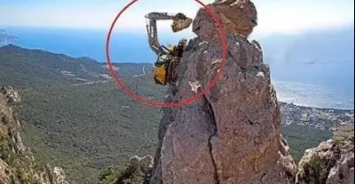 挖掘機是如何開上懸崖的?看完中國工程師的操作後,鏡頭拍下全過程