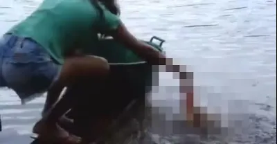 太猛了!巴西少女不用釣竿也能抓食人魚