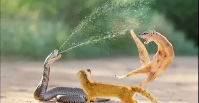 眼鏡王蛇噴出毒液與貓鼬大戰,看看最後誰能決勝!