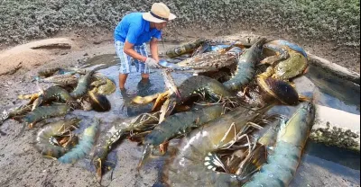 趕海發現極品「蝦王群」堆滿坑底,阿文堵住出口狂撿一桶,賺翻了