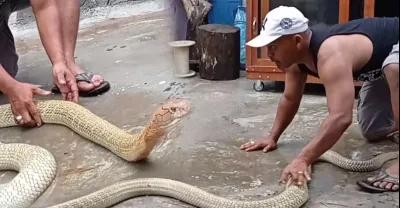 男子大膽挑戰大蟒蛇,鏡頭拍下全過程