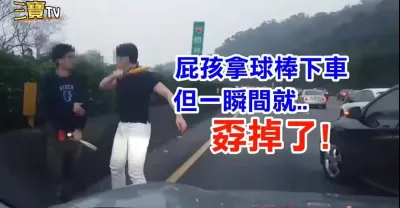 (你搞笑嗎?)屁孩惡意逼車,帶球棒下車找麻煩,但....一瞬間就孬掉了!