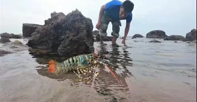 趕海發現深海大龍蝦,狂撿一桶,賺翻了