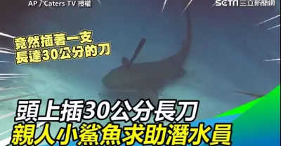 頭上插30公分長刀 親人小鯊魚求助潛水員