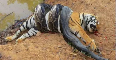 蟒蛇纏著老虎,下一秒急壞了