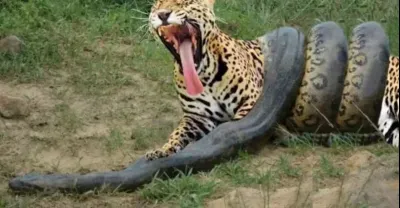花豹奮力抵抗大蟒蛇,鏡頭記錄全過程