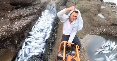 海岸魚群被拍死水坑,竟引來「蛟龍聚窩」太嚇人,這場面太刺激了