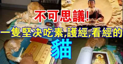 不可思議!一隻堅決吃素,護經,看經的貓!