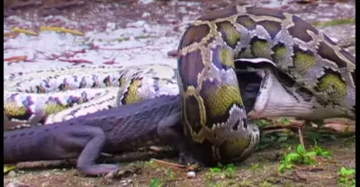 巨蟒要活吞獵狗 看看獵狗最後如何擺脫