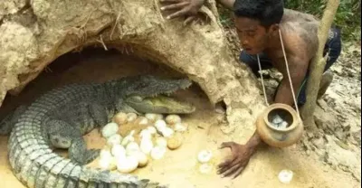 牛人體驗原始生活,為了生存偷鱷魚蛋,鱷魚媽媽:放下!