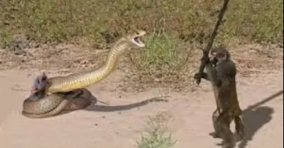 野外一條蟒蛇攻擊老鼠,沒想到猴子前來相助!