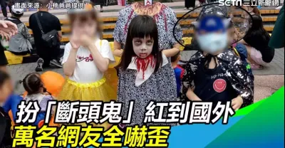 的確有被嚇了一下!台灣小女童紅到國外!萬聖節扮「斷頭鬼」