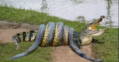 蟒蛇完虐鱷魚再次出現,鱷魚大戰蟒蛇