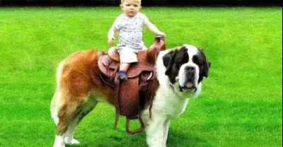 寶寶坐在狗狗身上,接下來狗狗的動作,看完不准笑