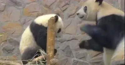 熊貓寶寶打媽媽,被熊貓媽媽摁著一頓打,場面太搞笑了