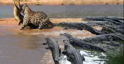 獵豹攻擊鱷魚,鱷魚同伴前來相救