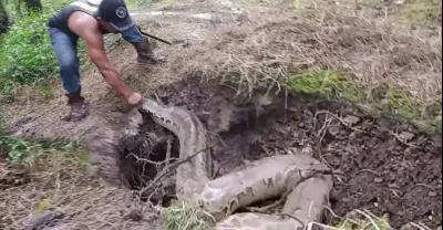 大蟒蛇雞寮飽餐被捉 發怒攻擊人趁亂逃走