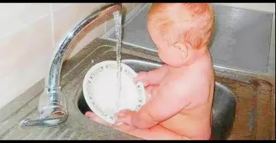 寶寶自己偷偷洗盤子,不料被媽媽撞見,接下來的一幕全家看傻眼!